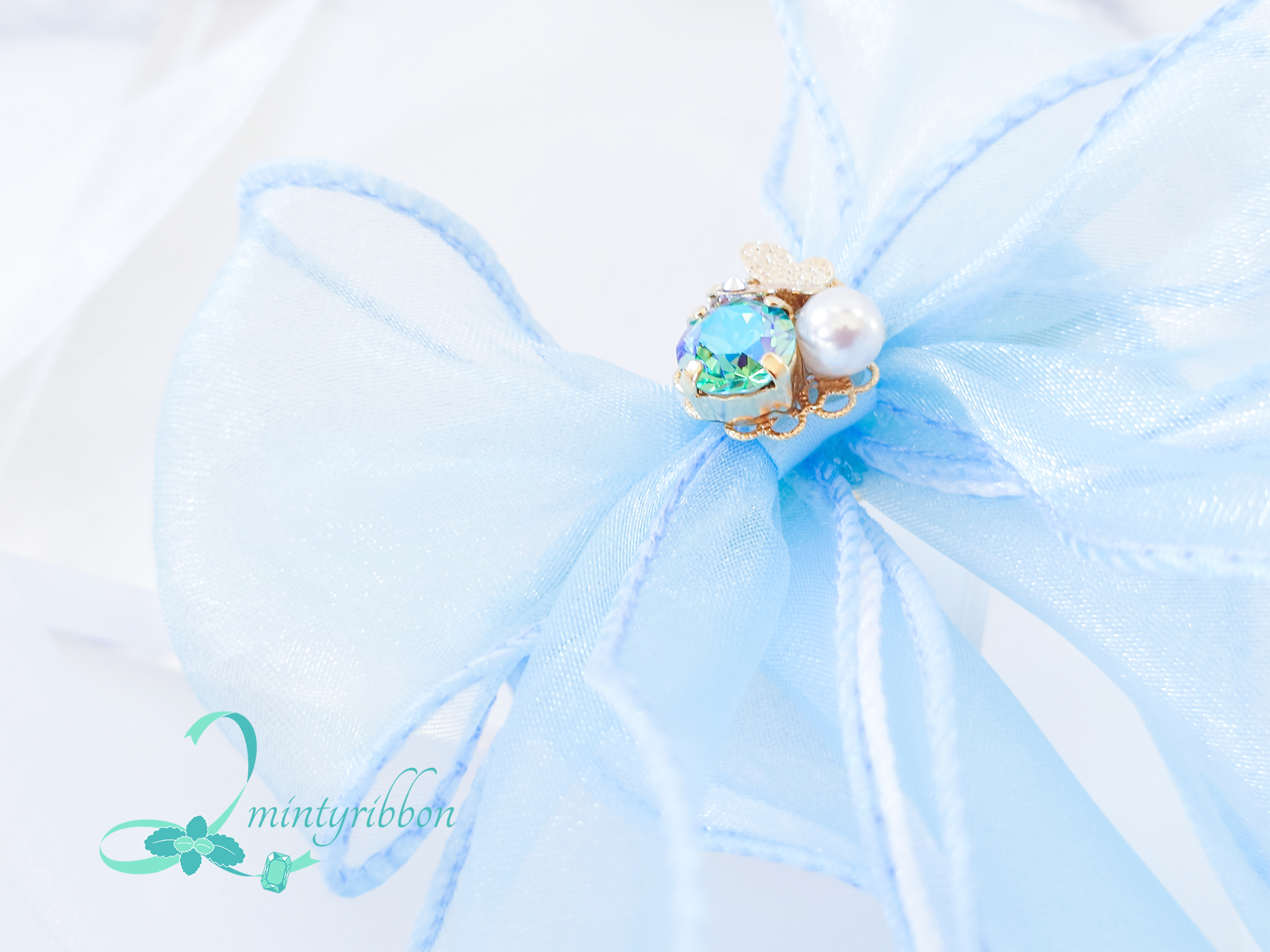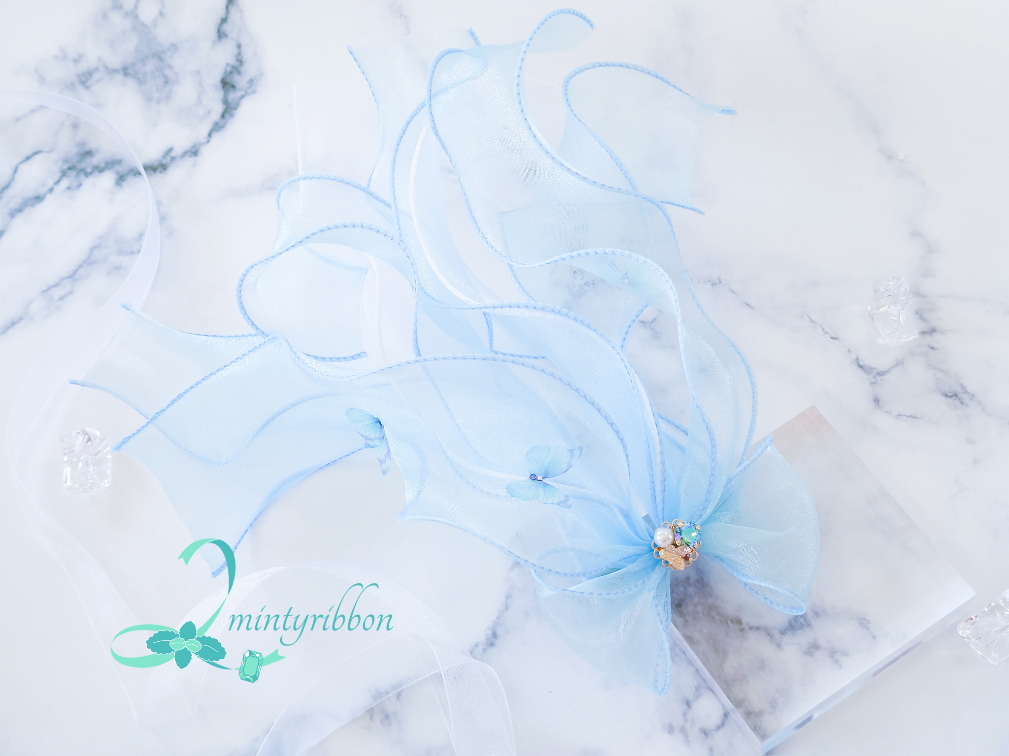 金魚と蝶の優しい出会いを、空色のヘアアクセサリーに仕立てました。